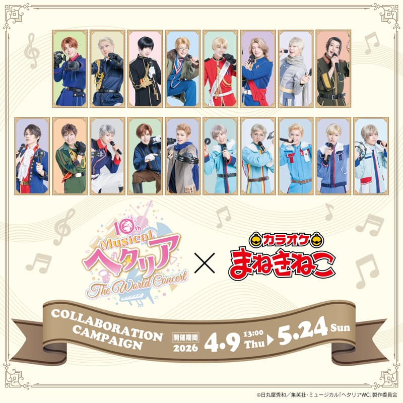 【 ミュージカル「ヘタリア〜The World Concert〜」 × まねきねこ 】購入制限に関して4月9日より開催予定の【 ミュージカル「ヘタリア〜The World Concert〜」 × まねきねこ 】オリジナルグッズにつきまして、購入制限を設けさせていただきます。